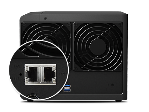 DS416 內(nèi)建支持故障移轉(zhuǎn)及 Link Aggregation 的雙網(wǎng)絡(luò)埠,在其中一個網(wǎng)絡(luò)埠故障的狀況下,仍可確保聯(lián)機(jī)繼續(xù),降低服務(wù)中斷的可能性以及因停機(jī)所造成的昂貴成本。此外,Link Aggregation 充分發(fā)揮雙網(wǎng)絡(luò)埠的優(yōu)點(diǎn),可提升連接速度,突破單一網(wǎng)絡(luò)線或網(wǎng)絡(luò)埠的速限。