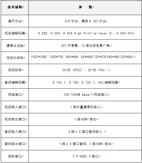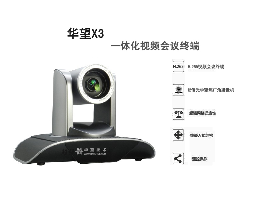 產(chǎn)品特性:內(nèi)置高清視頻會(huì)議終端+12倍光學(xué)變焦廣角攝像機(jī),安裝部署更簡單;業(yè)界首推H.265編解碼,降低40%帶寬占用;1080P高清分辨率;支持遙控器操作